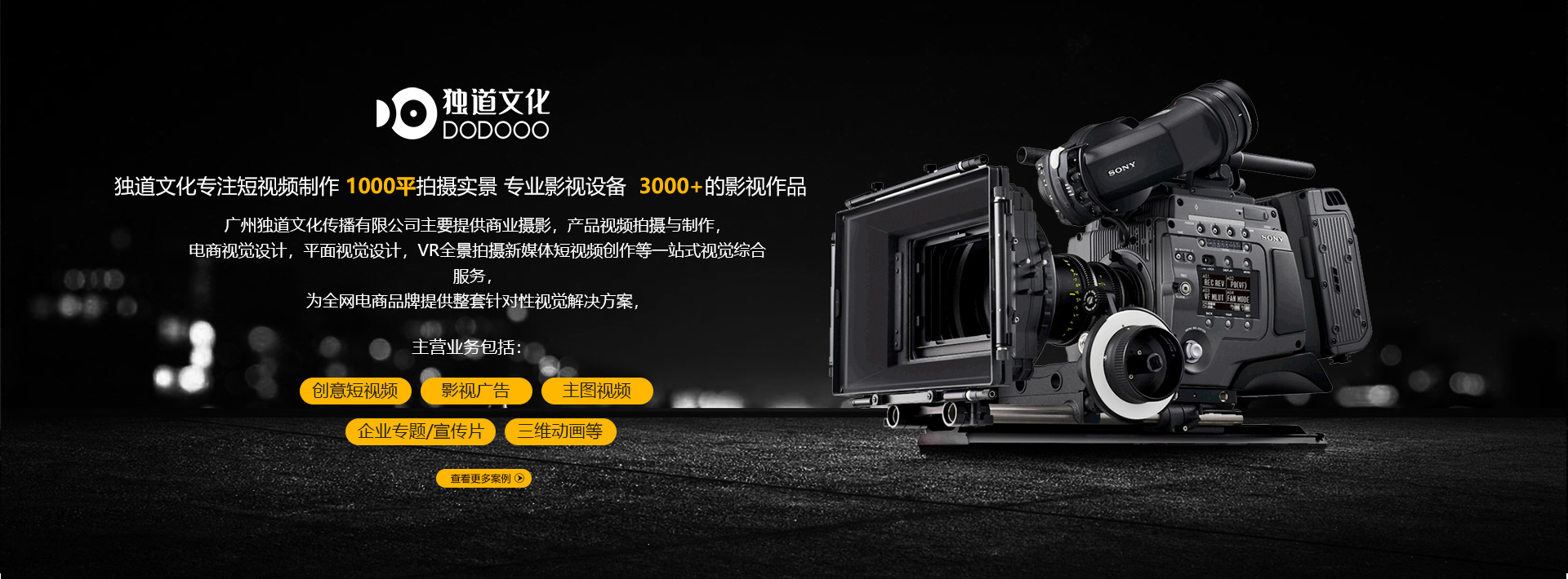 廣州獨道文化傳播有限公司主要提供商業攝影,產品視頻拍攝與制作,電商視覺設計,平面視覺設計,VR全景拍攝新媒體短視頻創作等一站式視覺綜合服務,為全網電商品牌提供整套針對性視覺解決方案,